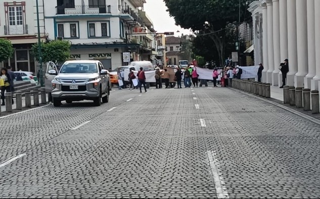 Xalapa, Ver.- (AVC/Verónica Huerta) La calle Enríquez frente a palacio de gobierno está cerrada por integrantes de la Agrupación de Jubilados y Pensionados del ISSSTE del Estado de Veracruz (Ajupiv) ante el incumplimiento del pago de seguros de vida a familiares de maestros fallecidos y la contratación de una Aseguradora para agilizar en lo sucesivo el pago del Seguro Institucional.
