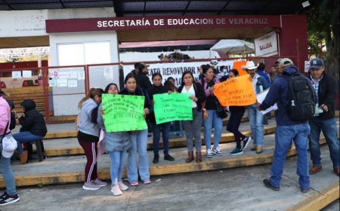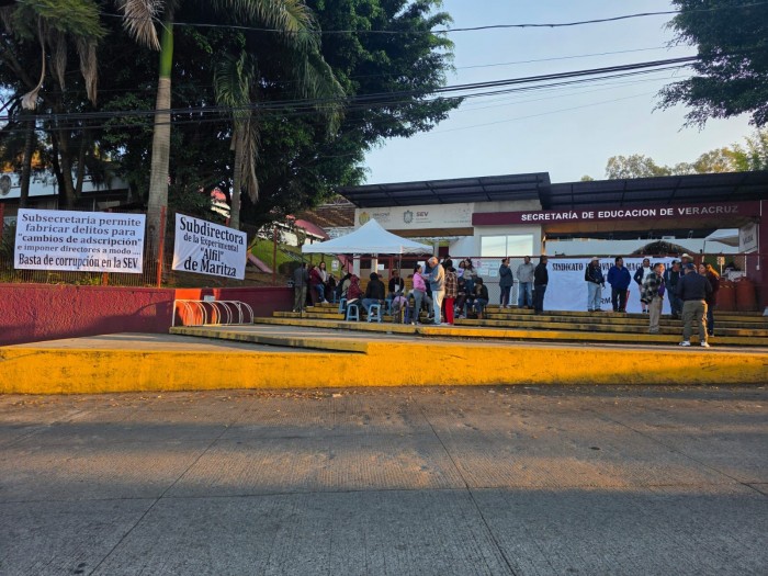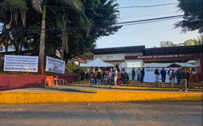 Xalapa, Ver.- (AVC/Perla Sandoval) Integrantes del Sindicato Renovador Magisterial Veracruzano bloquearon este lunes los accesos de la Secretaría de Educación de Veracruz (SEV) para denunciar presuntas irregularidades dentro de la Subsecretaría de Educación Básica. Los manifestantes acusaron que funcionarios estarían utilizando denuncias infundadas para desplazar a directores y “acomodar” a personal afín mediante cambios de adscripción. El secretario de Trabajos y Conflictos del gremio, Jorge García Lozano, afirmó que los señalamientos van dirigidos directamente a la subsecretaria Maritza Ramírez Aguilar, a quien responsabilizan de permitir prácticas que violan procesos internos y afectan a docentes en activo. “Venimos a denunciar las tropelías en las que ha estado incurriendo la subsecretaría de Educación Básica, Maritza Ramírez, al permitir que uno de sus alfiles esté denunciando en el nivel de secundarias a directores con tal lograr cambios de adscripción para gente que está trabajando con ellos”. Según expuso, entre los casos recientes se encuentra la actuación de la directora de la Escuela Experimental, Adriana Ramos Maldonado, quien presuntamente habría acudido al nivel de Secundarias para impulsar el ascenso de personal cercano. “Señalamos directamente a la directora de la Experimental, a la maestra Adriana Ramos Maldonado, quien se presenta en el nivel de secundarias y con tal de apoyar a su gente, se les hace fácil acusar a un director de acoso laboral y violar el debido proceso; no hay pruebas, quieren esa dirección a como dé lugar con tal de armar sus cuadros con aspiraciones políticas”. García Lozano subrayó que el sindicato rechaza que se utilicen cargos o denuncias para fines distintos a los educativos y enfatizó que el interés principal debe ser el servicio a las escuelas. “No queremos aspiraciones políticas sino maestros que estén en pro de la educación”. El dirigente advirtió que no permitirán que se fabriquen acusaciones contra docentes afiliados al sindicato, razón por la cual exigieron la intervención inmediata de la SEV. “No vamos a permitir que acusen a un agremiado indebidamente”.
