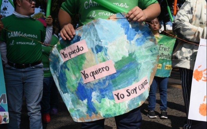 Xalapa, Ver.- (AVC/Verónica Huerta) En un ambiente de alegría, con globos, música, y con gritos de “Yo si puedo”, las familias, docentes y estudiantes del Centro de Atención Múltiple (CAM) número 55 salieron a las calles con el objetivo de visibilizar el Día Internacional de las Personas con Discapacidad, 3 de diciembre.