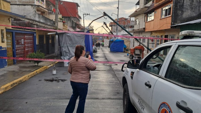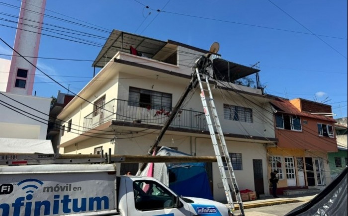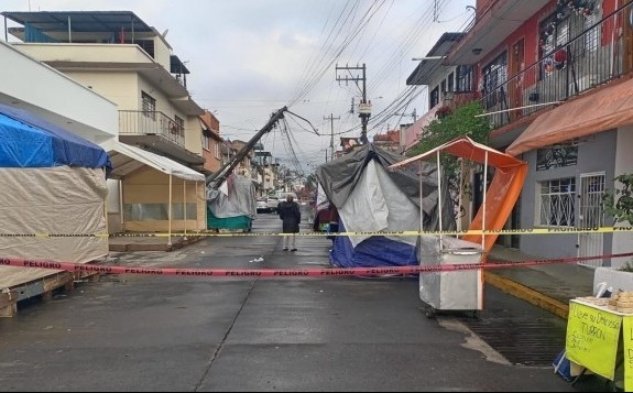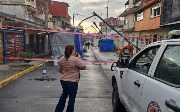 Xalapa, Ver (AVC) La mañana de este jueves se registró la caída de tres postes, dos de alumbrado público y uno perteneciente a la red de Telmex, en la colonia Felipe Carrillo Puerto, en Xalapa, luego de que una camioneta quedara enganchada en el cableado sobre la calle Mártires de Xalapa. El incidente ocurrió alrededor de las 05:00 horas, cuando un comerciante dedicado a la distribución de frutas y verduras realizaba maniobras con su vehículo. La unidad quedó atrapada en uno de los cables, generando un tirón que derribó de inmediato las estructuras, debilitadas previamente en su base, según relatos de vecinos. Vecinos del tramo entre las calles Unión y Juan Rodríguez Clara fueron los primeros en reportar la emergencia. Señalaron que los postes presentaban daños visibles desde meses atrás, por lo que la caída no les resultó sorpresiva, aunque sí generó preocupación ante el riesgo de descargas eléctricas y la falta momentánea de iluminación. El suceso ocurrió a escasos metros de la Basílica Menor de Nuestra Señora de Guadalupe, zona que desde temprano registra alta actividad comercial por la presencia de vendedores ambulantes y feligreses. Agentes de Tránsito Municipal acudieron al lugar para bloquear el paso vehicular y peatonal, mientras se evaluaba la seguridad del cableado caído. El área quedó acordonada para evitar accidentes adicionales. Se espera que Protección Civil Municipal emita un dictamen y notifique a las instancias responsables del alumbrado y las telecomunicaciones para proceder con el retiro y reemplazo de los postes. El conductor de la camioneta fue trasladado a las oficinas de Tránsito del Estado para determinar la sanción correspondiente por los daños ocasionados a la infraestructura pública.
