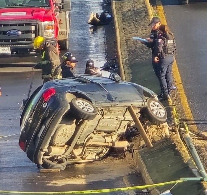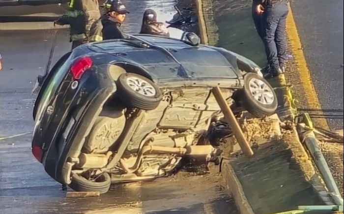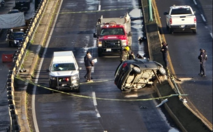 Los primeros reportes indican que al parecer el conductor manejaba con exceso de velocidad, perdió el control, el automóvil volcó y quedó contenido en el camellón del puente Macuiltépetl.