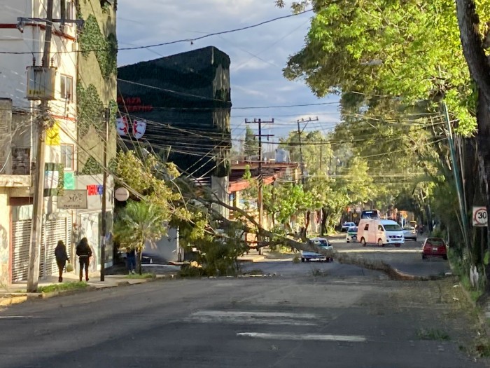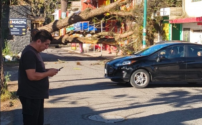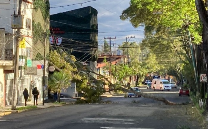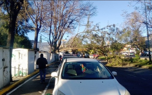 Xalapa, Ver.- (AVC/Verónica Huerta) Los vientos del Frente Frío número 37 provocaron caída de árboles, el colapso del techo de una vivienda, y corte de energía eléctrica en colonias de Xalapa; en tanto que en Misantla hay derrumbe de carretera, desbordamiento de arroyo, una menor de edad lesionada y el fallecimiento de una persona. En Xalapa, a partir de las 14:00 horas del domingo 22 febrero 2026, comenzaron a registrarse rachas de aire con velocidad promedio de entre 40 y 60 kilómetros por hora. Los árboles derrumbados por el viento obstaculizaron las calles Ignacio de la Llave casi esquina Miguel Alemán cerca de la conocida plaza Teatro. Otro árbol cayó sobre un carril de la avenida Enrique C. Rébsamen frente a la gasolinera. Un árbol de aproximadamente 8 metros de altura se desplomó en la calzada Lucas Martín, cayó sobre una vivienda del fraccionamiento que lleva el mismo nombre. Otro árbol de menor tamaño fue desplomado sobre la ciclo vía y parte de un carril de la avenida Adolfo Ruiz Cortines frente al edificio de la secretaría de Finanzas y Planeación (Sefiplan). Un carril de la carretera estatal Xalapa – Coatepec quedó invadido por el tronco de un árbol que se cayó a la altura del fraccionamiento Joyas. Un carril de la avenida Adolfo Ruiz Cortines quedó interrumpido alrededor de las 17:00 horas del domingo por la caída de un árbol, cerca del Centro de Alta Especialidad (CAE) “Doctor Rafael Lucio”. Otro árbol de gran tamaño se desplomó con el viento en la calle Paseo del Bosque del fraccionamiento Manantiales. Un árbol de tamaño superior a los 5 metros se desplomó en la calle José Abraham Cabañas, colonira Rafael Lucio en Xalapa; cayó sobre un vehículo y vivienda. En la Facultad de Humanidades de la Universidad Veracruzana (UV) un árbol se cayó hacia la calle y cayó sobre el techo del segundo piso de una casa. Techos volados El techo de una casa se desprendió y quedó sostenido sobre los cables de alta tensión, lo que provocó corto circuito y tensión entre los vecinos que habitan en la calle Cristóbal Colón de colonia Benito Juárez. En la escuela primaria Acela Servín Murrieta ubicada en la colonia Unidad Magisterial, el viento arrancó laminas del techado que cubre la cancha deportiva. La velocidad del viento desprendió una lamina del puente peatonal ubicado en la carretera federal Xalapa – Veracruz que une a plaza Américas con la secretaría de Educación de Veracruz (Sev) En el municipio de Banderilla, el techo de un estacionamiento se desprendió y cayó sobre un vehículo. Vecinos de la avenida Justino Sarmiento reportaron que el viento reventó los cristales de un edificio que está en proceso de construcción. Los cortes de electricidad se registraron en la avenida Lázaro Cárdenas, fraccionamiento LomasVerdes, y en las colonias Hidalgo, Benito Juárez. Personal de las direcciones municipales de Protección Civil, Parques y Jardines y Comisión Federal de Electricidad (CFE), atienden las solicitudes de ciudadanos de retirar árboles y reparar daños a cables y postes conductores de energía eléctrica.