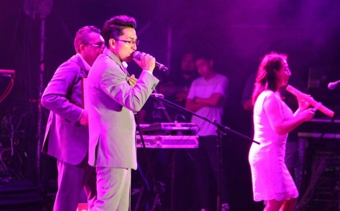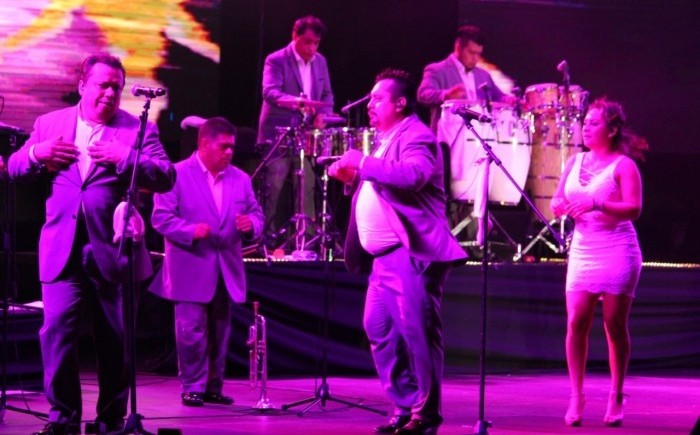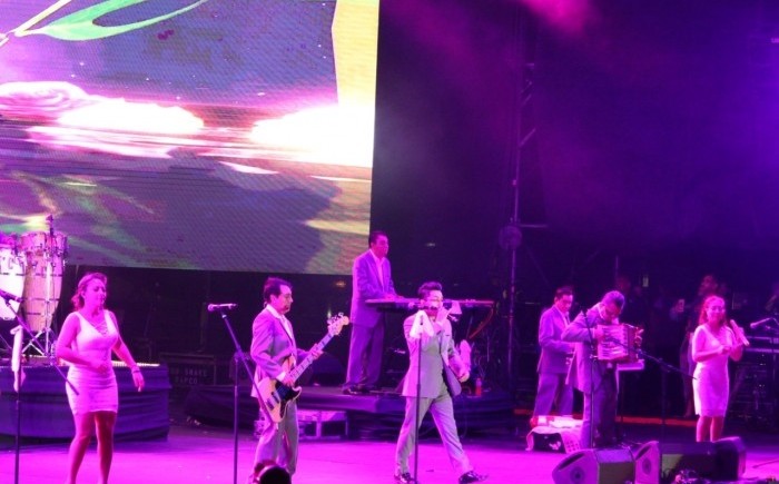 La agrupación musical apareció en el escenario a las 22:40 horas e inició su presentación con el tema Promesa de amor. *El grupo de cumbia más famoso de México se presentó por tercera ocasión en el escenario de la Macroplaza del Malecón.