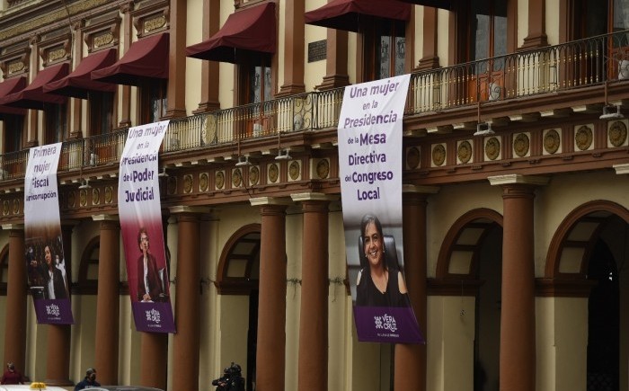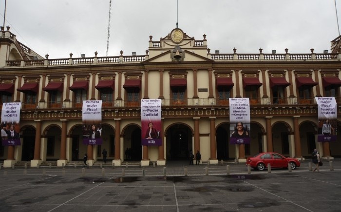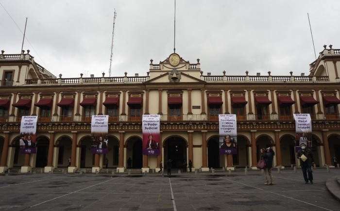 Xalapa, Ver.- (AVC/Verónica Huerta) En palacio de gobierno, los servidores públicos colgaron lonas con las fotografías de mujeres que están en la función pública, esto a unas horas realizarse la marcha de mujeres 8M para exigir sus derechos en el marco del Día Internacional de la Mujeres. Una lona más fue colgada en el viaducto del parque Benito Juárez con la leyenda “Una 4T con el valor de gobernar sin violencia machista #La4T será feminista o no será”. En el marco del Día Internacional de la Mujer, y con 35 mujeres asesinadas en Veracruz en los meses de enero y febrero, el gobierno de Veracruz exhibió las fotografías de la presidenta del Tribunal Superior de Justicia, Isabel Inés Romero Cruz; de la Fiscal General del Estado, Verónica Hernández Giadáns; de la Auditora General del Órgano de Fiscalización Superior del Estado de Veracruz (ORFIS) Delia González Cobos; de la presidenta de la Mesa Directiva del Congreso de Veracruz, Adriana Paola Linares Capitanachi. También, el gobierno de Veracruz usó la imagen de la Fiscal Especial en Combate a la Corrupción, Clementina Salazar Cruz; y de la presidenta de la Comisión Estatal de Derechos Humanos, Namiko Matzumoto Benítez para exhibirlas en una lona en el marco del Día Internacional de la Mujer. También, esta mañana se aprecia a hombres que elaboran vallas con madera para cubrir los ventanales de las instituciones bancarias como BBV y Santander y de otros negocios en el centro de la ciudad. En tanto que, las mujeres integrantes de la Asociación Civil, Equifonía e integrantes del “Colectivo por la Ciudadanía, Autonomía y Libertad de las Mujeres” se manifestaron en la plaza Sebastián Lerdo para denunciar que Veracruz ocupa el segundo lugar en nacimientos de niñas menores de 15 años, con 875 casos de enero a noviembre del 2020. Para este lunes 8 marzo, los grupos mujeres defensoras de derechos tienen programada una marcha por avenidas y calles de la ciudad, que saldrá del Teatro del Estado, “General Ignacio de la Llave De acuerdo con las cifras del Observatorio Universitario de Violencias Contras las Mujeres de la Universidad Veracruzana (UV), que dirige Estela Casados González, del 01 de enero al 28 de febrero del 2021 se han registrado 35 asesinatos de mujeres, de estos, 15 son feminicidios. Apenas el domingo 07 de marzo, a las 08:30 horas de la mañana, el cuerpo de una mujer que previamente fue asesinada, fue arrojado en medio de un pastizal ubicado en la localidad Las Trancas en los limites de de los municipio de Xalapa y Emiliano Zapata, ambos gobernados por presidentes municipales emanados del partido Morena y de la Cuarta Transformación (4T), Hipólito Rodríguez Herrero y Jorge Alberto Mier Acotl.