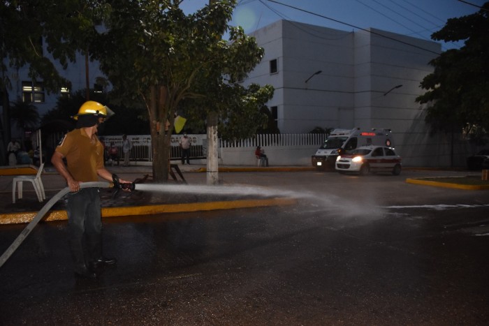 En Coatzacoalcos lavan y desinfectan edificios enfermos