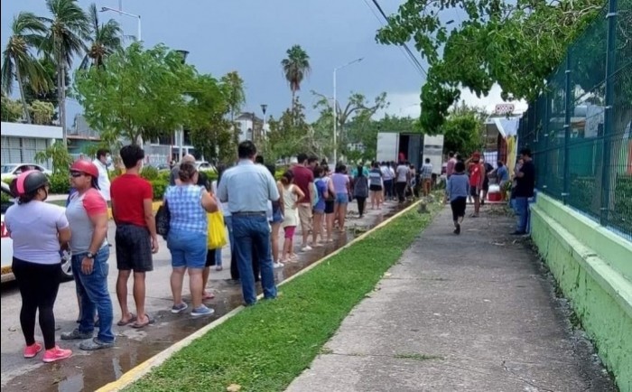 Poza Rica: largas filas para abastecerse de combustible, y para obtener hielo