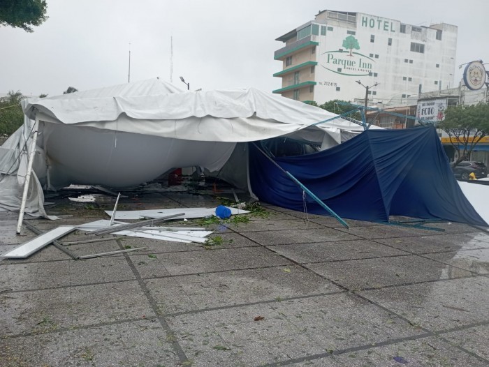 Coatzacoalcos, Ver.- (AVC/Maythe Morales Ramos) Los vientos de más de 90 kilómetros por hora del frente frío número 8 causaron daños de consideración en la ciudad y puerto de Coatzacoalcos; hasta el momento no hay reporte de personas heridas o pérdida de vidas humanas. Fachada de centro comercial Una de las primeras afectaciones de consideración que dejó las fuertes ráfagas de viento fue la caída de un plafón de la tienda Soriana El Palmar, el cual cayó sobre el parabrisas del taxi marcado con el número económico 1576. Tras el hecho la Unidad Municipal de Protección Civil, encabezada por su titular David Esponda Cruz, determinó suspender las actividades de uno de los bancos ubicados cerca del área afectada ante la existencia de un alto número de cuentahabientes y trabajadores en su interior, lo que incrementaba el riesgo ante el colapso de otro pedazo de Tablaroca. En tanto que el conductor del vehículo identificado como Francisco Javier García, resultó ileso. Techo de gasolinera Horas más tarde se desplomó el techo de una estación gasolinera localizada en Avenida Las Palmas, pese a la magnitud del percance no hubo reporte de personas lesionadas solo importantes pérdidas materiales, el lugar fue acordonado para efectuar nuevas afectaciones. De manera inmediata las autoridades descartaron la existencia de alguna fuga de combustible que pudiera provocar una emergencia mayor, toda vez que el personal previamente desactivó las tuberías y la red eléctrica. Con este hecho sumaría dos colapsos de techos en estaciones gasolineras en municipios de la zona sur; el primero ocurrió en el municipio de Tierra Blanca con saldo de dos personas lesionadas. Feria de emprendedores La estructura colocada el pasado sábado para albergar a un grupo de artesanos y emprendedores de la región y otros estados del país colapsó dejando solo importantes pérdidas materiales. Los vendedores buscaban comercializar sus productos con motivo de la celebración del Día de Muertos, sin embargo, sus mercancías se vieron dañadas por la caída de los tubos metálicos, luego de que las cuerdas que sujetaban las carpas cedieran ante las ráfagas de vientos cayendo sobre los locales. La exposición contaba con un amplio catálogo de artículos, como comida, venta de mezcales, toritos, joyería y regalos, que finalmente quedaron bajo la estructura colapsada. Mercado Puerto México Por otra parte, el mercado Puerto México sufrió la caída del techo exterior que alberga a los vendedores ambulantes y campesinos. El techo colapso por uno de sus costados, dejando sin protección a los vendedores que acudieron este primero de noviembre a tratar de comercializar sus productos. El mercado también presentó filtraciones de agua y se quedó sin servicio de energía eléctrica, lo que representó pérdidas de consideración para los locatarios. Estatua de Benito Juárez Otro de los daños visibles dejados por el paso del Frente Frío fue la caída del monumento de Benito Juárez, ubicado en el Malecón Costero. Está sería la segunda ocasión en la que la escultura del héroe patrio colapsa ante la intensidad de los vientos; la primera vez fue en el 2013. Personal de Obras Públicas y Protección Civil, acudieron para retirar la estatua y evitar que se siguiera dañando. El monumento quedó partido en dos, ambas partes – cabeza y cuerpo- lograron ser resguardadas por las autoridades para su posterior reparación. Otras afectaciones Hasta el cierre de esta nota se tenían contabilizados 27 árboles caídos de gran tamaño, 11 desprendimientos de láminas, así como el colapso del techo de una vivienda, una barda perimetral y un anuncio espectacular. Varios postes de energía eléctrica, lo que dejó sin luz a varios sectores de la ciudad. Debido a la intensidad de los vientos el servicio a la navegación mayor y menor continúa suspendida en el puerto. En tanto la Secretaría de Protección Civil del Estado, advirtió que se continuarán presentando lluvias de fuertes a intensas y las rachas de viento para la región sur serán de 70 a 85 kilómetros por hora con tendencia a disminuir.