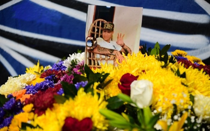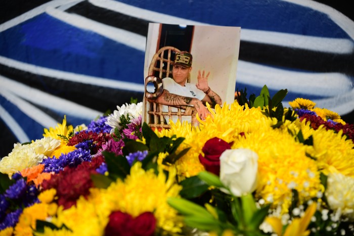 "Vuela alto" le gritaron al unísono los presentes frente al mural pintado por sus amigos en unas horas, con su fotografía al frente rodeada de veladoras.