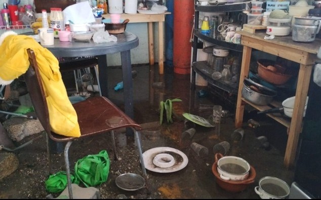 Ixtaczoquitlán, Ver.- (AVC) La caída de al menos 12 metros de barda perimetral de la cementera Apasco sobre la Calle 12 o camino al Valle de Tuxpango, provocó la acumulación y anegamiento de aguas fluviales al interior de seis viviendas, esto a causa de las fuertes lluvias registradas durante las últimas horas. Tras el percance, autoridades municipales activaron un protocolo y brindaron atención a las familias afectadas a través del personal de Protección Civil Municipal, así como Tránsito y Policía Local, además del Sistema DIF. Las lluvias de la noche de ayer domingo provocaron un severo acumulamiento y anegación al interior de la factoría, y aunque los trabajadores realizaron algunos hoyos para el desfogue, la barda se debilitó y cayó a la Calle 12 o camino al Valle de Tuxpango Tras el colapso de la barda, el agua se liberó y provocó que se inundaran seis casas cercanas a la fábrica. Tras la emergencia, al sitio llegaron las autoridades antes mencionadas quienes apoyaron a los colonos con el desalojo del agua y la limpieza de sus viviendas; los daños materiales son menores por fortuna. Cabe señalar que, las autoridades no reportaron personas lesionadas ni víctimas únicamente los daños y pérdidas materiales. “De nuestra parte, todo el apoyo y respaldo a la ciudadanía y presionaremos a la empresa para que se haga responsable de los daños ocasionados”, enfatizaron las autoridades zoquitecos. Cabe señalar que, por el momento, se mantiene cerrada la circulación, mientras se deslindan responsabilidades y se da paso a las labores de remoción de escombros, así como limpieza de la zona. Las autoridades municipales de Ixtaczoquitlán mantienen un protocolo de acción por lluvias y en caso de ser necesario activar los albergues temporales, por lo que se hace un llamado a la ciudadanía a reportar cualquier situación de riesgo al 911 o al número directo de Protección Civil 2721060115.