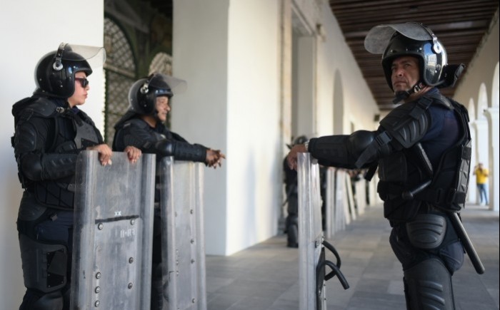 Xalapa, Ver.- (AVC/Perla Sandoval) Elementos antimotines de la Secretaría de Seguridad Pública (SSP) desalojaron a integrantes de la Unión de Beneficiarios del Seguro de Vida Institucional de Veracruz (UBSIVER) que mantenían bloqueadas la avenida Juan de la Luz Enríquez y la calle Rafael Lucio.