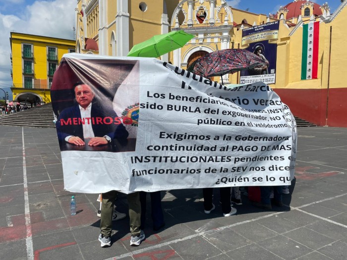 Xalapa, Ver.- (AVC/Verónica Huerta) Ante el incumplimiento de pagos del Seguro Institucional, los integrantes de la Unión de Beneficiarios del Seguro de Vida Institucional de Veracruz (UBSIVER) regresaron a manifestarse a la plaza Sebastián Lerdo para denunciar “el desfalco” cometido por autoridades desde el año 2010 a la fecha. En voz de los jubilados Felisa Castillo Arellano, Alejandro García Ruiz y Rosario Rojas Aragón exhortaron a sus iguales a sumarse a las manifestaciones que estarán realizando en el centro de Xalapa. Exigieron al gobierno de Veracruz que se cree un fondo económico que garantice el pago del Seguro Institucional a maestros jubilados, pensionados y familias de trabajadores fallecidos. Con respecto a que el viernes 3 de octubre, elementos de la policía antimotines de la Secretaría de Seguridad Pública (SSP) estatal los retiraron de la calle Enríquez tras cerrar el centro de la ciudad por 20 horas, los familiares y jubilados condenaron esta acción y exigieron al gobierno de Veracruz que privilegie el diálogo. “Nos parece inaceptable que en lugar de abrir el diálogo, la autoridad haya respondido con fuerza pública a un grupo de ciudadanos mayores que solo exige lo que por derecho le corresponde”, acusaron. Criticaron que esta administración al igual que el exgobernador priista Javier Duarte de Ochoa y el morenista Cuitláhuac García Jiménez se nieguen a escuchar a los ex trabajadores jubilados. “El magisterio vive una dolorosa realidad heredada de gobiernos pasados, que hicieron saqueo y desfalco de los fondos del Seguro Institucional desde las Administraciones encabezadas por Javier Duarte y Cuitláhuac García, junto con exfuncionarios como José Luis Lima Franco y Ariadna Selene, dejaron tras de sí corrupción, impunidad y despojo. Se emitieron cheques sin fondos y se cometieron fraudes documentales. El dinero de los maestros fue robado con total cinismo”, señalaron. Expusieron que exigir el pago de Seguro Institucional no es un beneficio, sino un derecho para los jubilados. “Durante años aportamos parte de nuestro salario para asegurar a nuestras familias, pero el Estado no cumplió. No marchamos por capricho; lo hacemos porque es la única forma de ser escuchados. No pedimos favores, exigimos que se nos devuelva lo que legítimamente nos pertenece. No queremos más promesas, queremos hechos”, finalizaron.