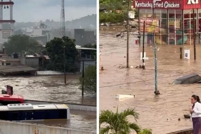 Poza Rica, Ver. (AVC).– Las intensas lluvias registradas en la zona norte de Veracruz provocaron inundaciones severas en Poza Rica, donde el río se desbordó y dejó incomunicadas varias calles y colonias. De acuerdo con reportes ciudadanos compartidos a la radiodifusora XEU, pasajeros del ADO quedaron varados luego de que las unidades no pudieron salir por el nivel del agua, que cubrió vehículos estacionados y alcanzó gran parte de la terminal. Ante la inundación, algunos pasajeros subieron al techo del edificio del ADO y de otros inmuebles cercanos para ponerse a salvo, mientras esperan ser evacuados por personal de Protección Civil. Las calles del centro de Poza Rica permanecen bajo el agua, y autoridades mantienen labores de rescate y apoyo a la población afectada.
