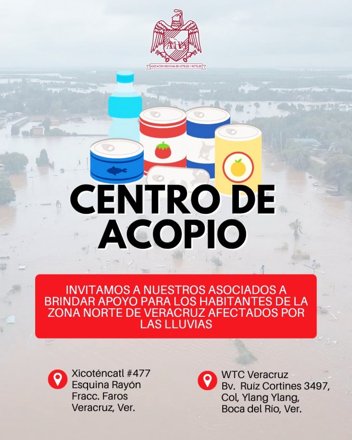 Veracruz, Ver.- (AVC/José Juan García) Hoteleros y la Secretaría de Cultura habilitaron centros de acopio en la zona conurbada con la finalidad de recolectar víveres y artículos de primera necesidad para los damnificados por las inundaciones que se registraron en municipios de la zona norte del estado de Veracruz. La Asociación Mexicana de Hoteles y Moteles de Veracruz y Boca del Río habilitaron dos centros de acopio: uno en sus oficinas de la avenida Xicoténcatl esquina con Rayón, en el fraccionamiento Faros, y otro en las instalaciones del Worl Trade Center. “Las recientes lluvias han afectado gravemente a la zona norte del estado. Desde la Asociación Mexicana de Hoteles y Moteles de Veracruz-Boca del Río, abrimos centros de acopio para recolectar víveres y artículos de primera necesidad en apoyo a las familias damnificadas (…) Te invitamos a sumarte y demostrar, una vez más, la fuerza y solidaridad del gremio hotelero veracruzano. Cada donativo cuenta”, publicó la asociación. Por su parte, la Secretaría de Cultura habilitó seis centros de acopios en los recintos que se ubican en la ciudad de Veracruz: el centro cultural del ex convento Betlehemita, el centro cultural Atarazanas, el Centro Veracruzano de las Artes “Hugo Argüelles”, Casa Principal, Fototeca de Veracruz y el Teatro de la Reforma. Estos recintos recibirán: artículos de limpieza, artículos de higiene personal, alimentos no perecederos, agua embotellada, ropa en buen estado y alimentos para mascotas.