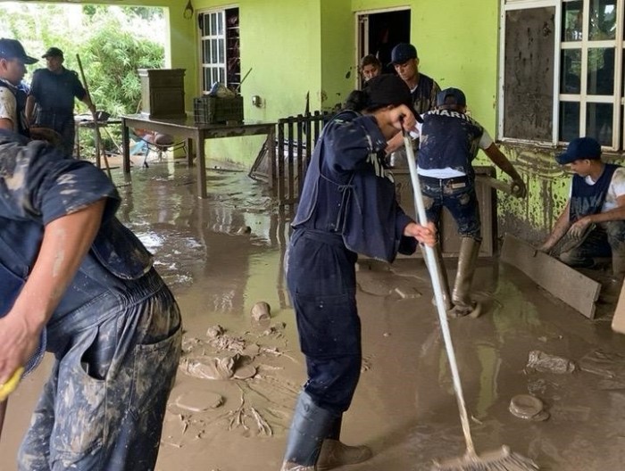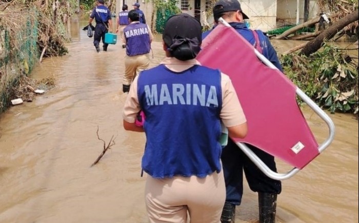 Veracruz, Ver.- (AVC) La Secretaría de Marina, a través de la Armada de México, informa que, con el propósito de brindar asistencia y apoyo directo a las comunidades afectadas a través del Plan Marina en su Fase de Auxilio, se han dado diferentes apoyos a la población, como limpieza en sus hogares, remoción de lodo y escombros de calles y carreteras principales, entrega de despensas.