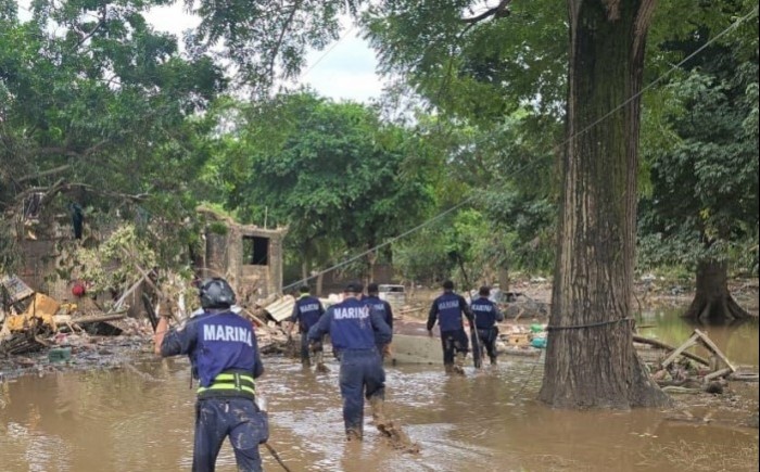 Así mismo, durante la noche se realizaron recorridos terrestres que permitieron identificar la disminución de niveles de la inundación, por lo que el personal naval desplegado estará en condiciones de apoyar con saneamiento de colonias, calles y avenidas, así como desazolve y limpieza de vías de comunicación y viviendas.