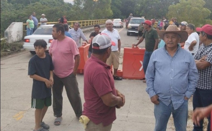 Tihuatlán, Ver.- (AVC/Verónica Huerta) En la mañana y medio día del domingo, fue cerrado el puente La Concepción por los pobladores, para exigir a Petróleos Mexicanos y al gobierno de Veracruz la reparación de la calle que comunica hacia las localidades de Meza Cerrada y Acontitla, en el municipio de Tihuatlán. Los manifestantes explicaron que las lluvias y el constante paso de vehículos pesados de Pemex formaron un socavón que representa un riesgo para la seguridad de los ciudadanos. Manifestantes apoyados por el agente municipal de Acontitla señalaron que la reparación de la calle y el reforzamiento del puente es una obra que debe reparar la para estatal Pemex y el gobierno de Veracruz. Los pobladores advirtieron que de no reparar el socavón de la calle que conecta hacia el puente La Concepción podría haber un accidente automovilístico. Agregaron que en sus comunidades y parcelas se han abierto pozos para la extracción de petróleo, sin embargo, la paraestatal no invierte en la construcción de caminos, pero sí contamina. Consideraron, que por el momento urge que instalen una plataforma de hierro para que puedan pasar los peatones en busca de víveres, mientras se busca una solución definitiva al problema del socavón. Este problema del socavón data de meses atrás, pero las lluvias de la semana pasada hicieron más grande el desperfecto, a tal grado que ya no pueden pasar los vehículos. “Por eso decidimos bloquear porque no nos hacen caso, ya hemos pedido a Pemex por las buenas que arreglen el socavón y no se quieren hacer responsables, bueno pues vamos mantener el bloqueo hasta obtener una solución” expresaron.