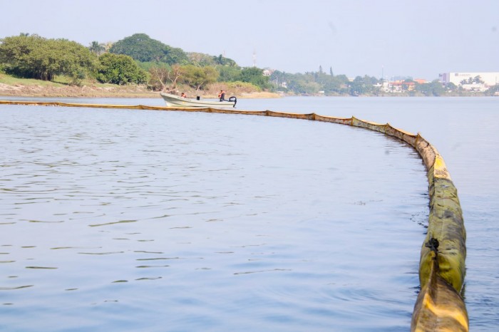 Veracruz, Ver.- (AVC/José Juan García) El titular de la Capitanía del puerto de Tuxpan, Rubén Eugenio Benítez Gasca, dio a conocer que se suspendió la navegación interior en el río Tuxpan a consecuencia del descenso de la mancha de hidrocarburo que arrastró la corriente por una fuga registrada en el poliducto Naranjos-Poza Rica, en el municipio de Álamo.
