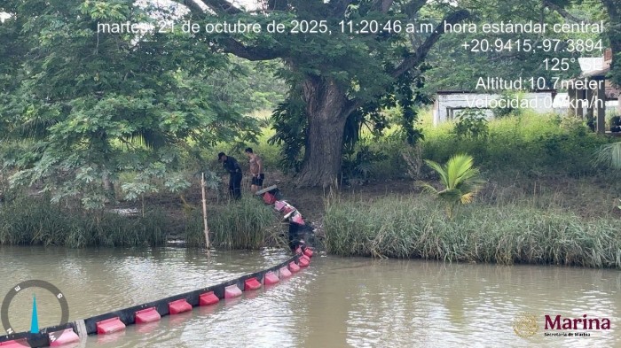 De forma complementaria, se colocarán ocho barreras más en los brazos del río Tuxpan para evitar la dispersión del material y proteger a las comunidades ribereñas. Pemex confirmó que las labores de reparación del oleoducto Poza Rica–Madero, de 30 pulgadas de diámetro, concluyeron este miércoles y las operaciones se reanudarán de manera segura conforme a los protocolos industriales y ambientales. Además, se realizan maniobras de succión y retiro del hidrocarburo contenido en las barreras mediante camiones full y equipos de alta capacidad, desplegados en la comunidad de Casa Blanca. De forma paralela, Pemex refuerza el apoyo social en comunidades como Cerro Dulce y Juana Moza, donde se llevan a cabo censos, entrega de víveres y limpieza de escombros, en coordinación con autoridades de los tres niveles de gobierno. La empresa subrayó que todas las acciones se realizan en estricto cumplimiento de los protocolos de seguridad y medio ambiente, reiterando su compromiso con la protección de las comunidades y los ecosistemas.