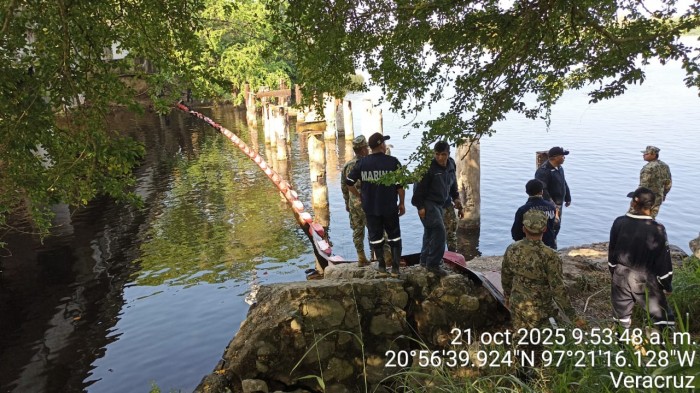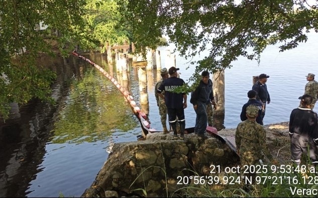 2025-10-23.- Se desplegaron 300 elementos en las bocas de los esteros de Tenechaco, Casa Blanca, Palma Sola, Tumilco y Quinta Las Puertas con dos unidades de Pemex de presión al vacío total, mismas que recolectan el hidrocarburo para depositarlo en pipas.