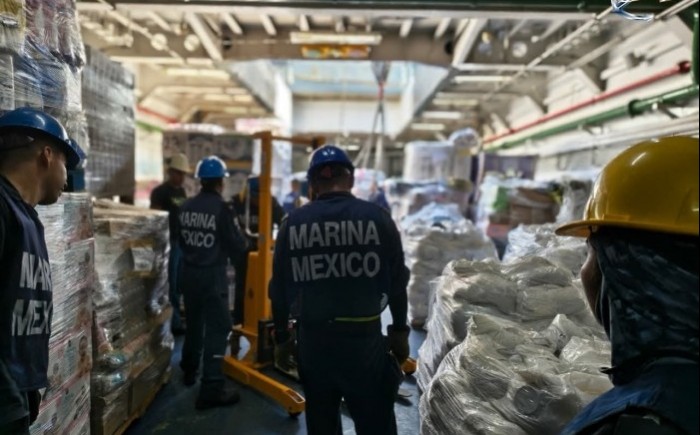 Veracruz, Ver.- (AVC/José Juan García) La Secretaría de Marina (Semar) dio a conocer que se transporta más de 116 toneladas de despensas, enseres de limpieza, insumos médicos y equipo especializado para la atención de hidrocarburos desde La Paz, Baja California Sur, para entregar a las familias damnificadas del norte del estado de Veracruz. La ayuda se trasladó de la Cuarta Zona Naval al puerto de Manzanillo, Colima, a bordo del buque de apoyo logístico Isla Tiburón (BAL-01). La Semar detalló lo que se transporta desde La Paz: más de dos mil 700 despensas (aproximadamente 116 toneladas), más de 120 pallets de artículos a granel (enseres de limpieza, higiene, alimentos y agua embotellada), más de mil 600 piezas de insumos médicos en general y equipo especializado para atención de hidrocarburos. La Marina anunció que la ayuda humanitaria se distribuirá por tierra a las familias afectadas en el estado de Veracruz. “Cada milla recorrida es un mensaje de unidad y esperanza, porque juntos navegamos con un solo propósito: estar siempre #ParaServirAMéxico”, publicó la Marina.