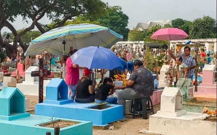 Veracruz, Ver.- (AVC/José Juan García) Miles de familias acudieron a los cementerios de la zona conurbada Veracruz-Boca del Río para visitar las tumbas de sus seres queridos en el Día de los Fieles Difuntos, el 2 de noviembre, en el cual la Iglesia Católica ora por quienes se adelantaron en el camino de la vida para que gocen de la felicidad eterna. En el caso del panteón municipal, que se ubica en la colonia Dos Caminos de la ciudad de Veracruz, abrió sus puertas a temprana hora. En la avenida Paseo de la Libertad, elementos de la Policía Naval, de la Policía Municipal y de la Dirección Municipal de Tránsito implementaron un operativo de seguridad y vial dada la expectativa del número de visitantes que llegarían al panteón municipal a lo largo del domingo. La directora de Panteones del ayuntamiento de Veracruz, María del Rosario Vera Vela, refirió que la visita al cementerio municipal fue numerosa durante el sábado, sin embargo, estimó que llegarían unas 15 mil a lo largo del 2 de noviembre. Comerciantes se establecieron sobre la avenida Paseo de la Libertad para vender flores, tamales, pambazos, sándwiches, volovanes, aguas y refrescos a los visitantes. Las condiciones meteorológicas resultaron favorables para que las familias visitaran las tumbas de sus seres queridos. A las 10 de la mañana, el responsable de la parroquia San Francisco de Asís, Abraham Hernández López, celebró una misa en la capilla del cementerio municipal para pedir por el eterno descanso de los fieles difuntos. Al final de la celebración eucarística, personal del ayuntamiento de Veracruz repartió alrededor de tres mil piezas de pan entre los asistentes. Por su parte, el administrador del cementerio Particular de la ciudad de Veracruz, Clemente Hernández, comentó que las visitas al lugar iniciaron desde dos semanas antes a las celebraciones. Sin embargo, Hernández estimó que unas cuatro mil personas visitaron e cementerio Particular durante el 31 de octubre y 1 y 2 de noviembre. Cabe resaltar que los cementerios de la zona conurbada se fumigaron en los días previos a los Días de Todos los Santos y de los Fieles Difuntos para combatir la presencia del mosco transmisor del dengue, además de que se recomendó a los visitantes que no dejaran recipientes con agua.