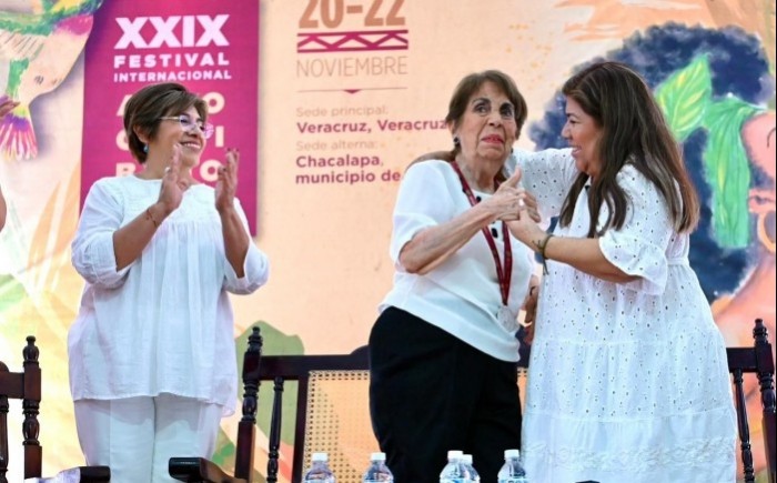 Veracruz, Ver.- (AVC) La alcaldesa electa de Veracruz, Rosa María Hernández Espejo, destacó que fortalecer la vida cultural del municipio implica reconocer y valorar la tercera raíz, parte esencial de la identidad veracruzana, durante la inauguración del XXIX Festival Internacional Afrocaribeño, realizada en el Ex Convento Betlehemita. Al atestiguar la entrega de la Medalla Gonzalo Aguirre Beltrán a la historiadora y escritora María Luisa Herrera Casasús, Rosa María reconoció que el impulso de la gobernadora Rocío Nahle García y de la secretaria de Cultura del Estado, Xóchitl Molina González, permite consolidar espacios de expresión, memoria y diálogo que enriquecen la vida cultural de todo Veracruz. *Danzón dedicado a…* La presidenta municipal electa encabezó junto a la secretaria de Cultura un recorrido por el centro histórico, en cuyo trayecto bailó al ritmo de la Banda y la agrupación artística Toros de Almolonga, hasta llegar al Zócalo porteño. En dicho espacio, Hernández Espejo continuó con los festejos del festival, disfrutando también de una pieza de baile al ritmo del tradicional danzón. Finalmente, Rosa María señaló que, en la administración municipal que encabezará a partir de enero próximo, trabajará en coordinación con el Gobierno del Estado para fortalecer la cultura y promover el orgullo por las raíces que conforman la diversidad veracruzana.