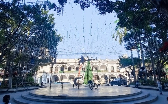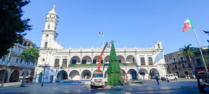 Veracruz, Ver.- (AVC/José Juan García) Personal de la Dirección de Mantenimiento Urbano del ayuntamiento de Veracruz inició con la instalación del árbol de Navidad y de adornos alusivos a la temporada decembrina. El árbol Navidad se instaló frente al palacio municipal. En tanto que series navideñas se colocan en la parte alta de la fuente que se encuentra en el zócalo. Las jardineras del zócalo ya lucen adornadas con flores de Nochebuena con el rojo intenso que les caracteriza, aunque también se plantaron unas en tonalidad amarilla. El ambiente navideño ya se respira en la zona conurbada Veracruz-Boca del Río. Adornos alusivos a la Navidad se ofrecen en comercios; tiendas departamentales exhiben playeras, sudaderas y suéteres con frases navideñas, con imágenes de Santa Claus e incluso del Grinch; en otros establecimientos se pueden encontrar coronas de adviento; comerciantes del estado de Puebla iniciaron la venta de pinos en la zona de mercados de Veracruz; automovilistas colocaron los tradicionales cuernos de reno en sus vehículos. En días próximos será cuando la alcaldesa Patricia Lobeira Rodríguez encienda el árbol de Navidad.