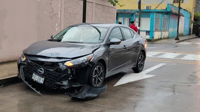 El choque se presentó al filo de la 07:10 horas en la esquina de la Calle 4 y Avenida 5, en las afueras de la tienda de autoservicio "Farmacias Guadalajara".