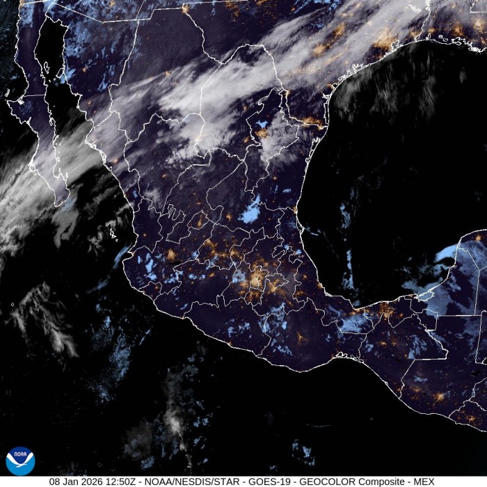 Se observan cielos medio nublados en el norte del estado, cerca de Tamaulipas, y en el sur, donde hay nieblas y neblinasque se disiparán conforme avance la mañana. En el resto de Veracruz predomina cielo mayormente despejado.