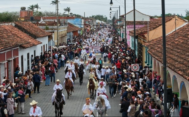 Tlacotalpan, Ver.- (AVC) Más de 400 jinetes recorrieron las principales calles de la ciudad de Tlacotalpan, marcando el inicio de las fiestas de la Virgen de la Candelaria, en su edición 249. El trayecto inició en el Puente García, punto que históricamente marca la llegada de visitantes a Tlacotalpan durante la festividad patronal. El abanderamiento del Cuadro de Honor de la Cabalgata Infantil y Juvenil se remonta a 1865, cuando Tlacotalpan fue capital del estado de Veracruz durante la ocupación militar del general Alejandro García. En ese periodo, el desfile tuvo un carácter militar como reconocimiento al comportamiento de los héroes del Sotavento. Con el paso del tiempo, esta práctica evolucionó hasta convertirse en una manifestación cultural que forma parte del calendario tradicional de la región del Papaloapan. La celebración también tiene su origen en las peregrinaciones a caballo realizadas por mayorales de las haciendas de la región para rendir homenaje a la Virgen de la Candelaria. El abanderamiento reconoce a personas que han contribuido a preservar esta tradición. Actualmente, la Cabalgata es considerada una expresión viva del patrimonio cultural del Sotavento. Las abanderadas portan traje de jarocha elaborado de manera artesanal, mientras que los jinetes visten guayabera y atuendo blanco tradicional. Las actividades de la Virgen de la Candelaria continuarán en los próximos días con eventos religiosos, culturales y artísticos, que cada año concentran a visitantes de distintas regiones del estado y del país.