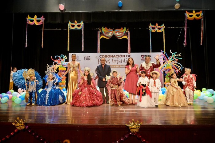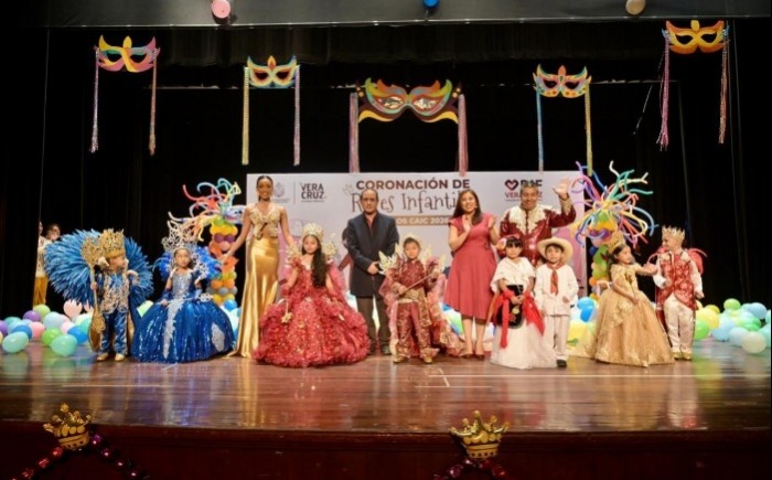 Veracruz, Ver.- (AVC) En un ambiente de mucha alegría y colorido, se realizó la coronación de “Romina I” y “Saúl I”, del CAIC Sixtita Bello, como soberanos del Carnavalito “Rey de Reyes” en donde participaron de manera entusiasta, niñas y niños de los 14 Centros de Asistencia Infantil Comunitarios (CAIC) del DIF Municipal de Veracruz. La presidenta del DIF Municipal de Veracruz, Daniela Lily Hernández y el Rey del Carnaval de Veracruz 2026 Bernardino Jiménez “Nayo”, coronaron a “Saúl I”; mientras que el director del DIF, Roberto Muñoz Joachín y la reina del Carnaval, Fernanda Pumar coronaron a Romina I, quienes recibieron bicicletas como premio. El segundo lugar fue el CAIC Reserva II, y el tercer lugar para el CAIC Lombardo. El jurado estuvo integrado por la Corte Real del Carnaval 2026 y contó con la participación de los CAIC Reserva I, 21 de Abril, Veracruz Adelante, José Guadalupe Zuno, Colonias del Poniente, Reserva II, Arcoiris, Lombardo, Emiliano Zapata, Lavaderos, Campanita, Nuevas Esperanzas, Sixtita Bello y Maruca Beltrán. Con este evento, impulsado por el gobierno municipal que encabeza la alcaldesa Rosa María Hernández Espejo a favor de la niñez, se favorece el óptimo desarrollo de los pequeños, así como se fortalece su socialización y se fomenta el orgullo por sus raíces y sus tradiciones.