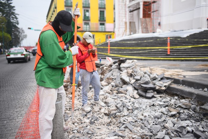 La explanada recibirá un nuevo recubrimiento, actualmente en etapa de prueba, además del cambio de la red eléctrica y tubería que ya requerían sustitución.