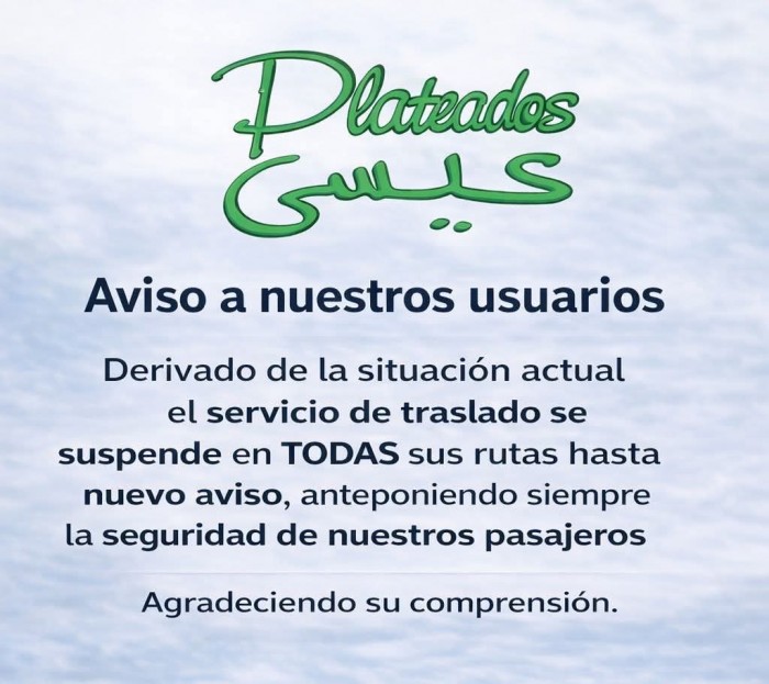 Plateados agradeció la comprensión de sus usuarios y señaló que mantendrá informada a la ciudadanía sobre cualquier actualización respecto a la reanudación del servicio.