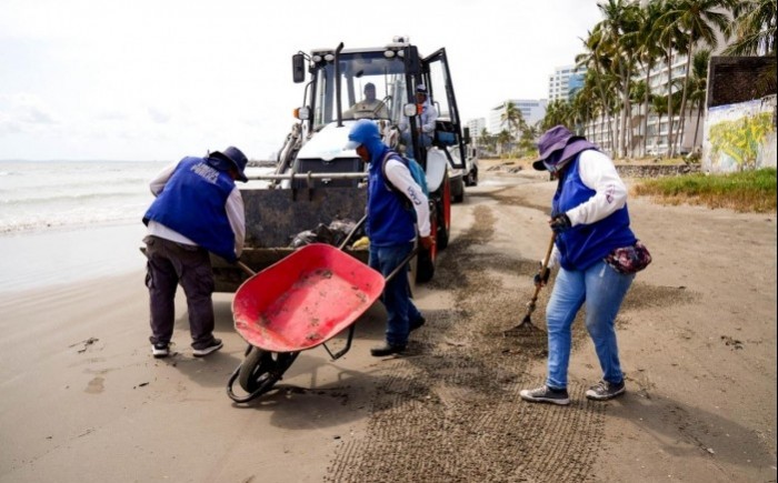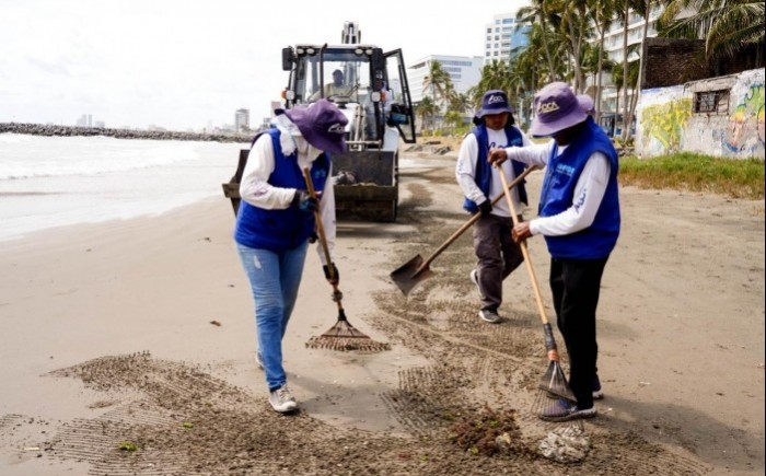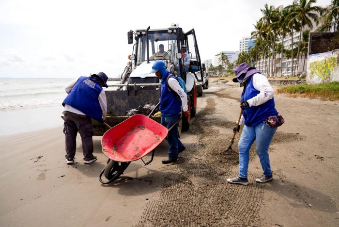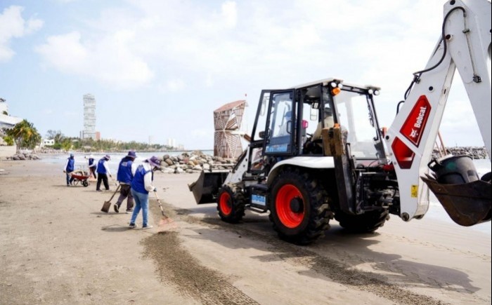 Boca del Río, Ver.- (AVC) Ante la presencia de manchas de hidrocarburo en la costa del Golfo de México, la Alcaldesa de Boca del Río, Maryjose Gamboa Torales, reiteró que se mantiene activo un operativo permanente de vigilancia y limpieza en las nueve playas del municipio, con el objetivo de preservar estos espacios en condiciones adecuadas para su uso. Por ello, la mañana de este miércoles, personal de la Dirección de Limpia Pública, como parte de sus labores diarias, llevó a cabo acciones de mantenimiento en las playas y que éstas se encuentren en las mejores condiciones para el disfrute de residentes y visitantes. Gamboa Torales subrayó que la atención a la franja costera refleja el esfuerzo continuo de su administración por mantener estos espacios en buen estado durante todo el año, con cuadrillas que inician labores desde las 6 de la mañana para asegurar resultados visibles y permanentes. Diariamente trabajan en labores de limpieza 180 personas con 18 recolectores, 9 camiones de volteo, 2 retroexcavadoras y 3 máquinas bobcat. Como parte de estas acciones, se ha implementado el uso de maquinaria pesada para reforzar las labores de limpieza en distintos puntos de la franja costera, optimizando los tiempos de respuesta y mejorando la eficiencia en los trabajos realizados. Finalmente, la alcaldesa de Boca del Río, Maryjose Gamboa Torales, destacó que el municipio se encuentra listo para recibir a miles de visitantes, consolidándose como uno de los principales destinos turísticos del sureste mexicano, gracias a sus atractivos turísticos, a su riqueza gastronómica y al don de servicio de los boqueños.