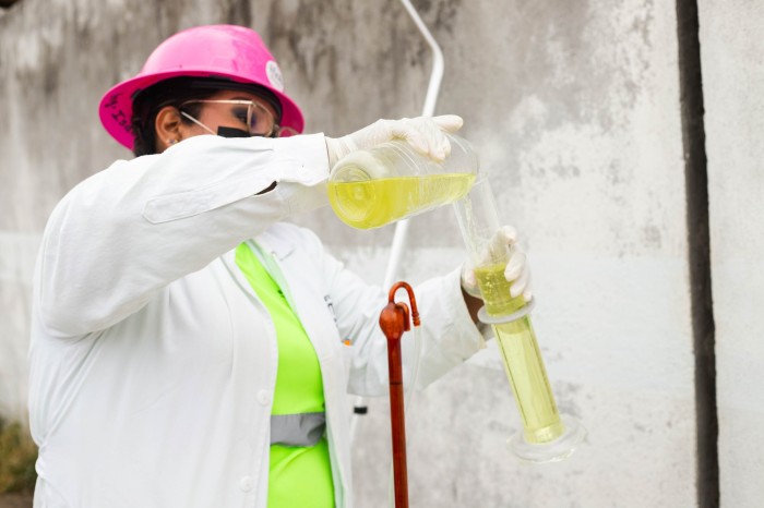 Veracruz, Ver.- (AVC) Grupo MAS realiza la determinación de la calidad del agua en pipas mediante análisis de densidad y de parámetros físico-químicos, con el fin de verificar que cumpla con los estándares requeridos para su uso.