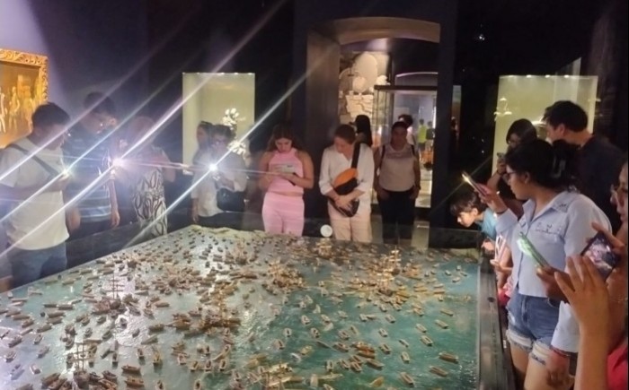 Veracruz, Ver.- (AVC) La Secretaría de Marina, a través de la Armada de México, por conducto de la Primera Región Naval, informa que Museo Naval México recibió la visita de 4,824 turistas nacionales y extranjeros, en el periodo comprendido del 30 de Marzo al 12 de abril. En la temporada vacacional de Semana Santa, el Museo Naval México abrió sus puertas durante dos semanas consecutivas, ampliando su horario de las 10:00 a las 17:00 horas. Lo que permitió a miles de turistas que visitaron el Puerto de Veracruz recorrer las 27 salas que conforman este Museo Naval, mismas que tienen como objetivo dar a conocer la historia de la Secretaría de Marina, Armada de México. Durante su estancia, los visitantes pudieron realizar recorridos guiados, participar en los talleres culturales que se llevaron a cabo en la sala de lectura, promoviendo la creatividad en niños y adultos y ofreciendo distintas experiencias a bordo del Museo Naval México. Cabe mencionar que, en lo que va del año, se han recibido a un total de 7,679 visitantes, lo que permite seguir difundiendo la historia y cultura de la Secretaria de Marina, Armada de México. El Museo Naval México, ubicado en Veracruz, es un museo lúdico en donde se exhiben más de 1700 piezas, entre las que destacan, barcos a escala, instrumentos de navegación, uniformes, entre otros efectos museográficos, citado recinto cuenta con recursos tecnológicos que permiten a los visitantes, adentrarse en la cronología histórica, para comprender el quehacer de la Armada de México,