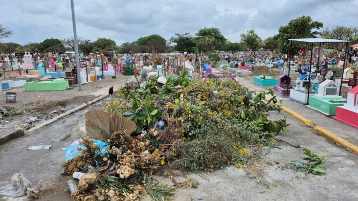 Veracruz, Ver.- (AVC) Con una gran participación ciudadana este domingo se realizó una intensa campaña de limpieza en el Panteón Municipal de Veracruz, logrando recolectar alrededor de siete toneladas de basura, en un esfuerzo por mantener en condiciones adecuadas este espacio de memoria y contribuir a la salud pública mediante la eliminación de focos de infección. Personal de la dirección de Panteones realizó labores de limpieza en las cinco hectáreas del camposanto, retirando cacharros, floreros con agua estancada y desechos sólidos, además de desmalezado para reducir riesgos sanitarios asociados a la acumulación de agua, basura y vegetación nociva. Estas acciones responden a la visión del Ayuntamiento de Veracruz que encabeza la alcaldesa Rosa María Hernández Espejo, orientada a la recuperación del orden, la limpieza y la dignificación de los espacios públicos, en el marco del ordenamiento y mejora de la imagen urbana del municipio. La jornada destacó por la participación activa de la ciudadanía, que se sumó a los trabajos para mejorar las condiciones del panteón y contribuir a la prevención de riesgos sanitarios en las colonias aledañas ante la próxima temporada de lluvias.