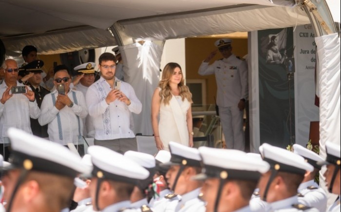 Antón Lizardo, Ver.- (AVC) La Presidenta Municipal de Boca del Río, Maryjose Gamboa Torales, asistió a la Heroica Escuela Naval Militar, ubicada en Antón Lizardo, municipio de Alvarado, donde se llevó a cabo la conmemoración de la gesta heroica protagonizada por los cadetes de la Escuela Naval Militar y el pueblo veracruzano, en defensa de la soberanía nacional, ocurrida el 21 de abril de 1914 en el Puerto de Veracruz. La ceremonia fue encabezada por la Presidenta de México, Claudia Sheinbaum Pardo, y contó con la presencia del titular de la Secretaría de Marina, el Almirante Raymundo Pedro Morales Ángeles; del Secretario de la Defensa Nacional, General de División Ricardo Trevilla Trejo; de la Gobernadora del estado, Rocío Nahle García; así como de la Presidenta Municipal de Veracruz, Rosa María Hernández Espejo. En el marco del acto protocolario por el 112 aniversario de este hecho histórico, se llevó a cabo la Jura de Bandera de 419 cadetes de primer año pertenecientes a la Escuela Naval Militar, la Escuela Médico Naval y la Escuela de Enfermería Naval. Durante su participación, la alcaldesa de Boca del Río reconoció la labor que desempeñan los elementos de la Secretaría de Marina-Armada de México, destacando su contribución permanente al orden y la seguridad en el municipio. Finalmente, reiteró el compromiso de su administración de trabajar de manera constante en favor del bienestar de la población, impulsando acciones que permitan consolidar un municipio con mayores oportunidades y en condiciones de libertad.