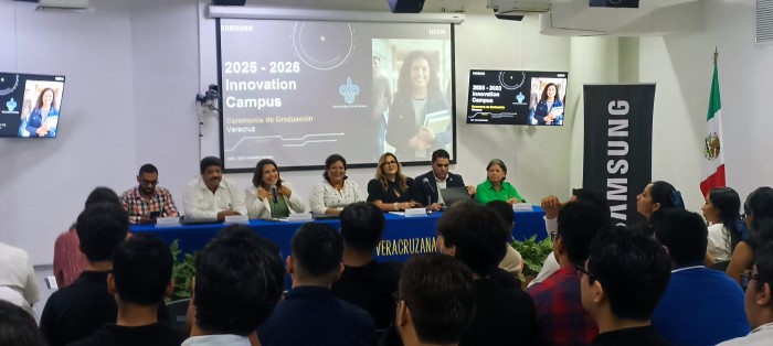 Boca del Río, Ver.- (AVC/José Juan García) Un total de 67 alumnos de la Universidad Veracruzana, del Instituto Tecnológico de Veracruz y de Universidades Politécnicas del estado se graduaron del programa Samsung Innovation Campus 2025-26, en el cual aprendieron habilidades y conocimientos sobre Inteligencia Artificial. En entrevista, la representante de Samsung Universidad Veracruzana (UV), Rosa María Woo García, dijo que los 67 universitarios iniciaron el programa en noviembre del 2025 y que lo concluyeron en marzo pasado. Woo García detalló que los jóvenes tomaron 150 horas, entre presenciales y virtuales, como parte del programa Samsung Innovation Campus 2025-2026, y la Facultad de Ingeniería, Eléctrica y Electrónica Región Veracruz fue la sede. “El contenido está enfocado primeramente en Estadística, Matemática y posteriormente en cuestiones de Inteligencia Artificial, Aprendizaje Automático, Aprendizaje Profundo, son habilidades que el programa está orientado para enfocarse, para que los alumnos de cualquier institución pública, no importa el programa educativo al que pertenezcan puedan incorporarse y tener este aprendizaje”, explicó. En el caso de los alumnos de la Máxima Casa de Estudios, la representante de Samsung UV mencionó que se contó con la participación de estudiantes de las licenciaturas de Medicina, Ingeniería Civil, Electrónica, Mecatrónica e Informática. Rosa María Woo García resaltó que el curso está orientado para que los alumnos puedan aquilatar el conocimiento que se les imparte a través de Samsung Innovation Campus. Además, Woo García destacó que el Centro Nacional de Evaluación (Ceneval) les otorgó una microcredencial, la cual se incorporará en las cédulas profesionales de quienes tomaron el curso. “(La microcredencial) valida la parte de habilidades de liderazgo, eso es lo que estamos validando en esta edición, posteriormente estaremos trabajando en validar la parte de Inteligencia Artificial”, añadió. La representante de Samsung UV refirió que se trata de la tercera edición del programa, pero precisó que es el segundo año donde participan alumnos de educación superior del estado de Veracruz. Finalmente, Rosa María Woo García aseguró que se le da seguimiento a los alumnos que tomaron el programa Samsung Innovation Campus para conocer cómo es que se incorporaron al mundo laboral.